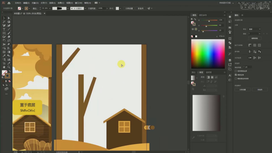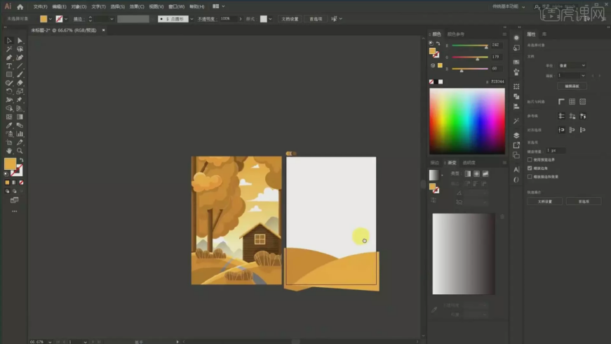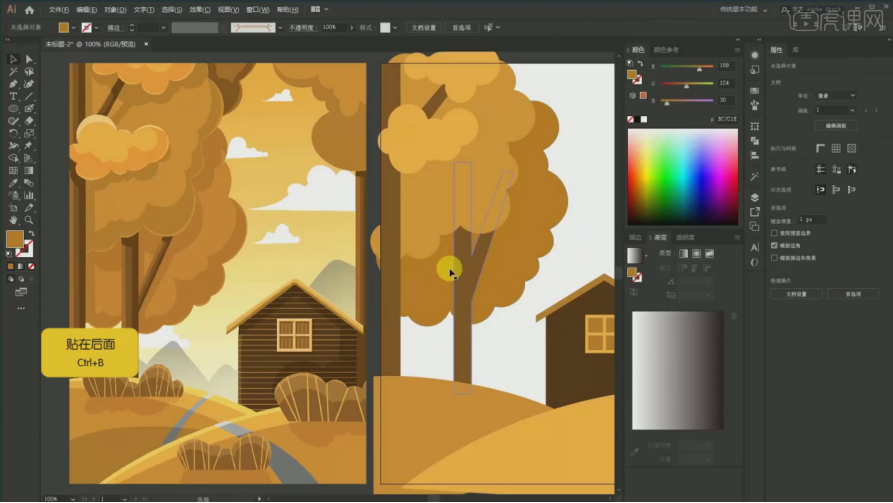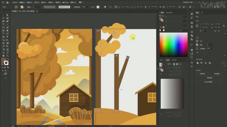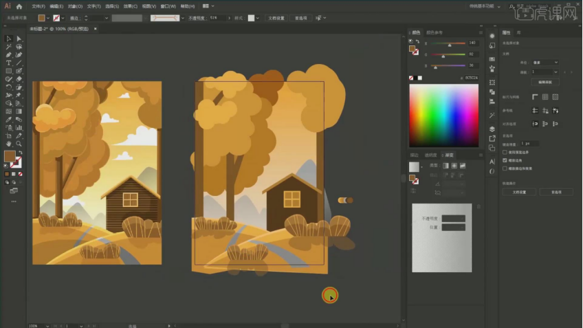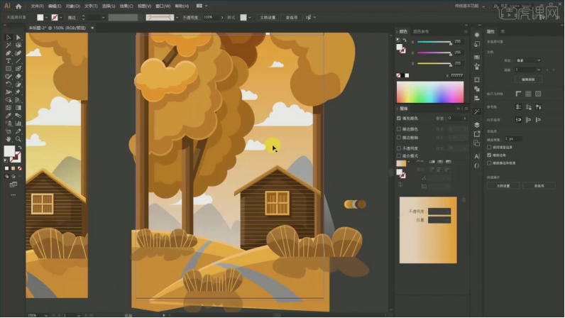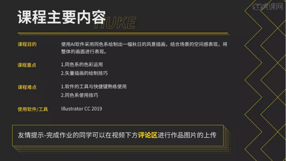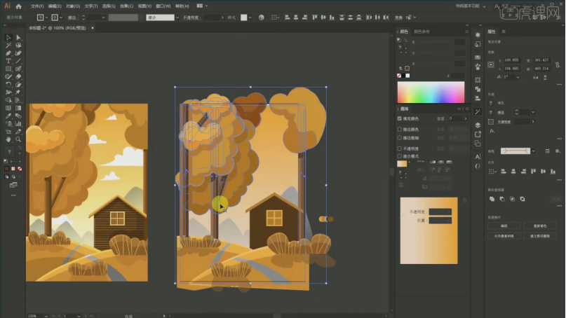 1、【课程次要内容】:【课程目标】用AI软件采用同色系绘制出一幅秋天的风光插画,17、填充布景:颜色的话要从淡色到深,调整宽度大小,然后再剪切蒙版,具体如图所示。22、树干投影 吸收加深一点的【Ctrl+G】编组,连系场景的空间感表示,