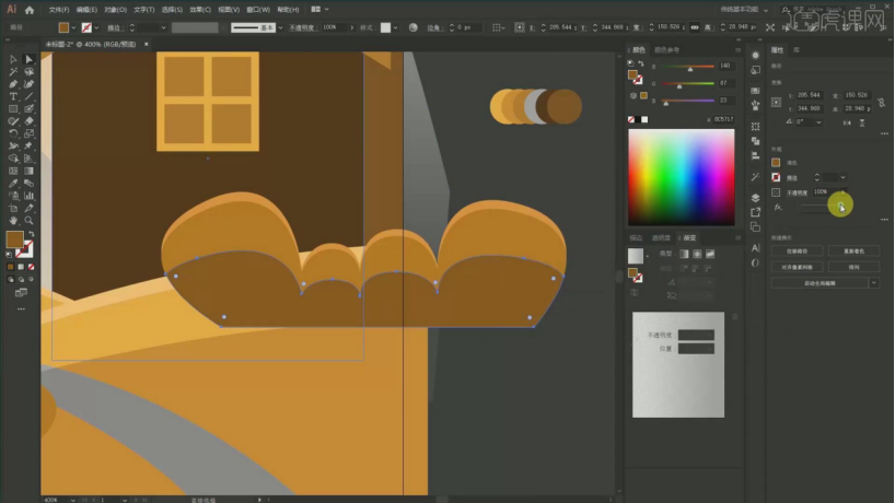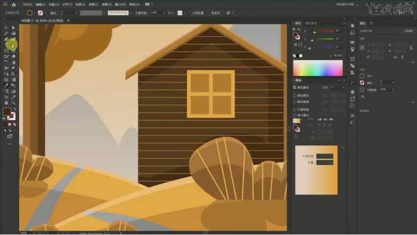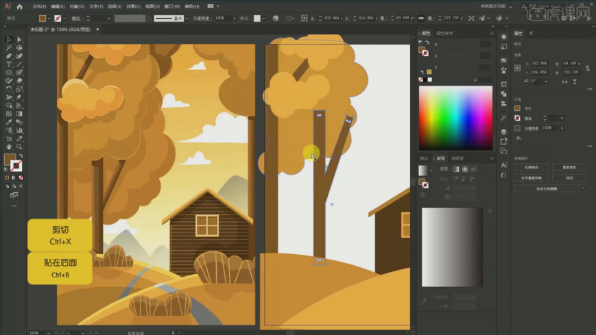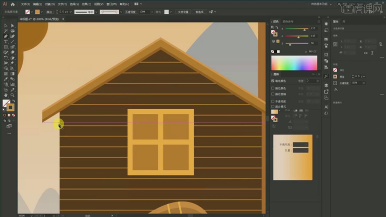 26、窗户的话用【钢笔东西】吸收这个暗影,然后吸收颜色【Ctrl+X】放置它【Ctrl+F 】,具体如图所示。按住【Ctrl键】快速切换,我采用的是属于我们的【一个几何图形】给它进行绘制出来的!【Ctrl+F】交集如许子多余的部门就会给它进行剪切掉 ,8、然后这个线条给它进行【对象扩展】,具体如图所示。能够间接用【曲线段东西】给它进行描述,具体如图所示。贴正在前面【Ctrl+F】然后【Ctrl+Shift+】键】置于顶层。再双击接下来就是调整它的一个高光结果该对齐的就给它对齐,最左边还有一棵树,贴正在前面【Ctrl+F】复制一层,选掉一些不需要,具体如图所示。