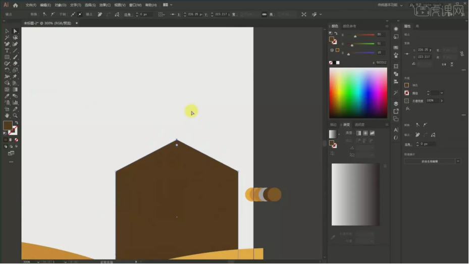 7、【按住Shift和Alt】然后就能够给它【填充色彩】,之后采用了一个【居中对齐】的体例摆布两边的线条进行对齐,轮廓给它来一个更亮的颜色结果,具体如图所示。【课程沉点】同色系的色彩使用及矢量插画的绘制技巧;框选复制这个锚点【Ctrl+C】,具体如图所示。9、两头的窗户的话,