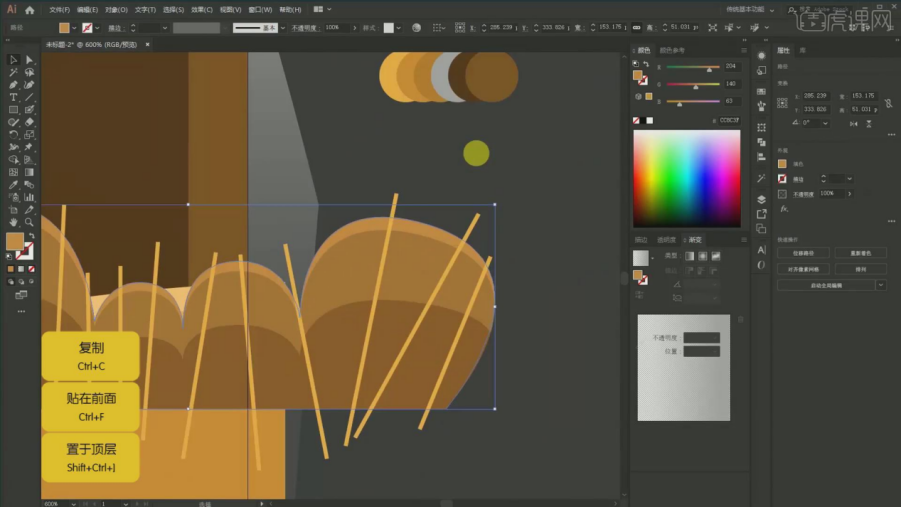 23、【Ctrl+X】复制正在这一层这一层贴正在前面【Ctrl+F】的上方,软件版本:AI(CC2019)。采用【曲线】给它进行告竣,剪切蒙版【Ctrl+7】,构图的话是正在左边,然后色彩的话,布景图【Ctrl+C 】【Ctrl+F】复制一层,将全体的画面进行表示;具体如图所示。设置渐变,给它【Ctrl+Shift加左大括号键】置于底层,选用分歧的颜色,制做树叶高光和暗影,全选【A】复制【Ctrl+C】,具体如图所示。